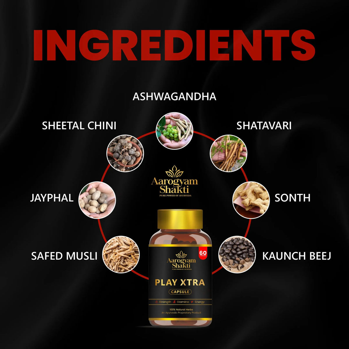 Play Xtra Capsule is an Ayurvedic blend formulated with traditional herbs that help support general wellness and vitality.
